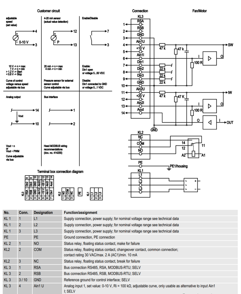 Схема подключения центробежного ЕС-вентилятора K3G310PH3832: