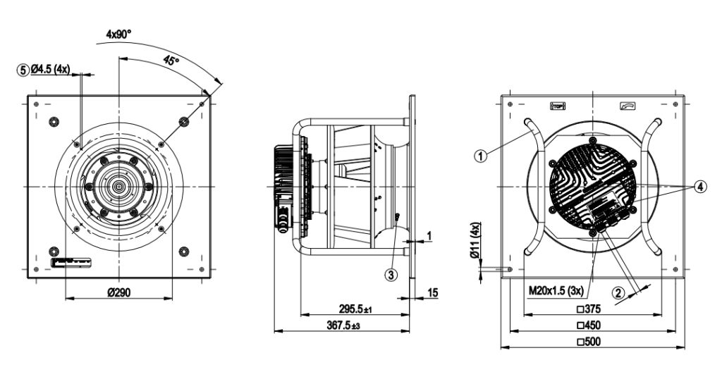 Чертеж центробежного ЕС-вентилятора K3G310PH3832:
