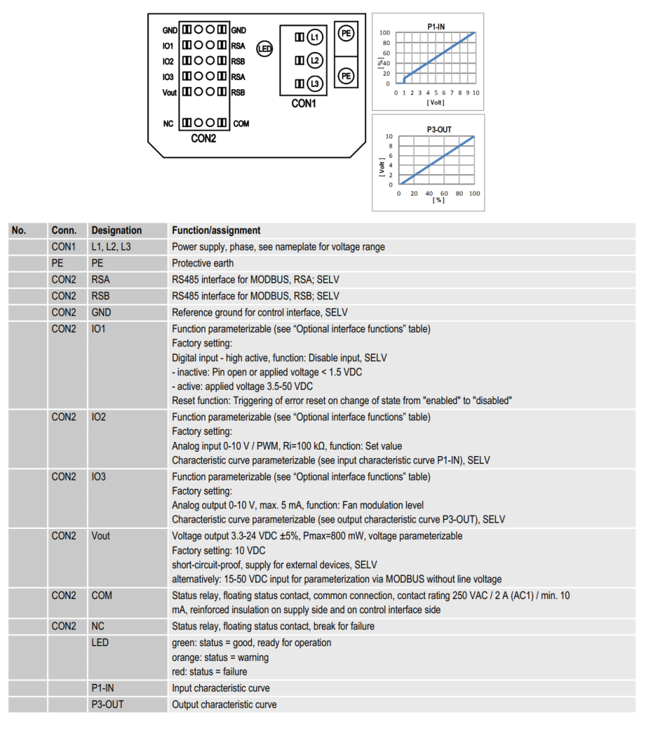 Схема подключения центробежного ЕС-вентилятора RadiPac K3G355-PV70-01/F01: