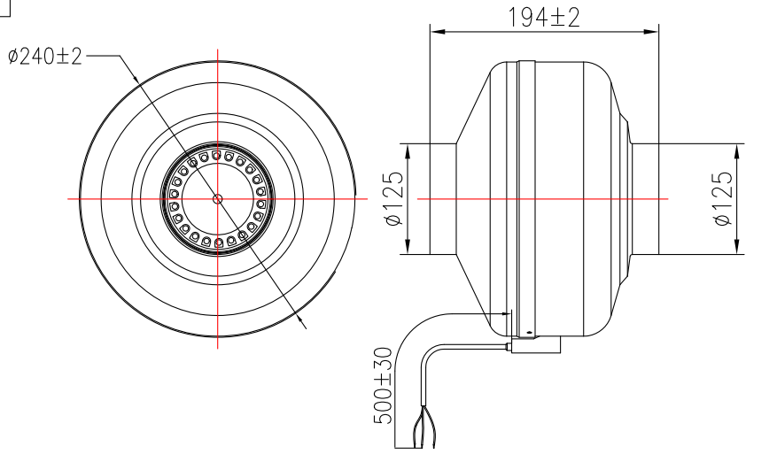 Чертеж канального вентилятора Lionball CDF2E125: