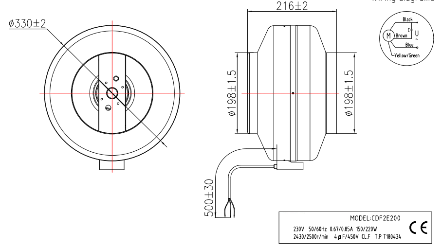 Схема подключения канального вентилятора Lionball CDF2E200: