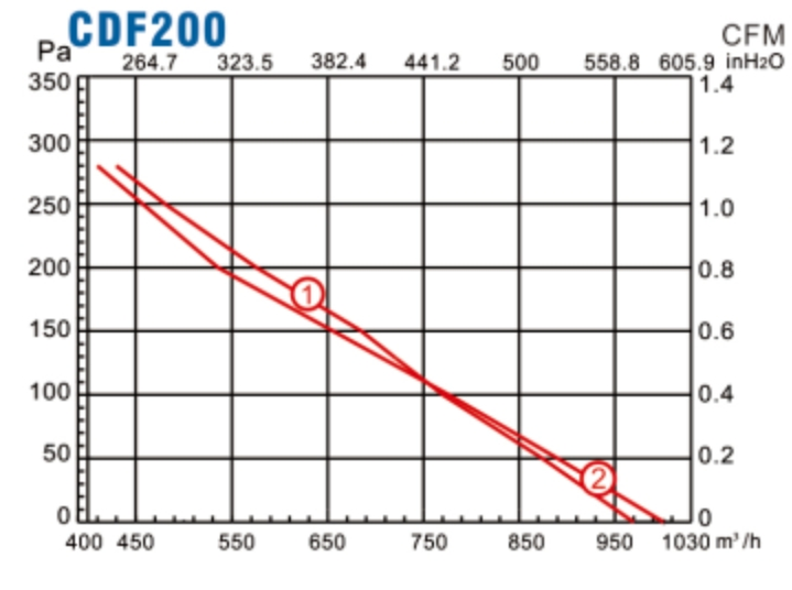 Характеристики производительности канального вентилятора Lionball CDF2E200: