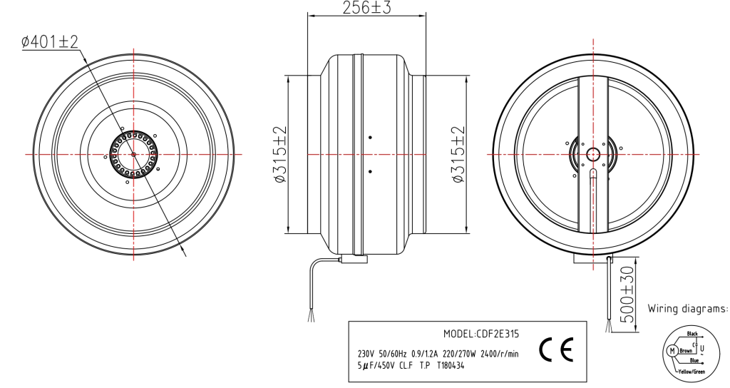 Чертеж канального вентилятора Lionball CDF2E315: