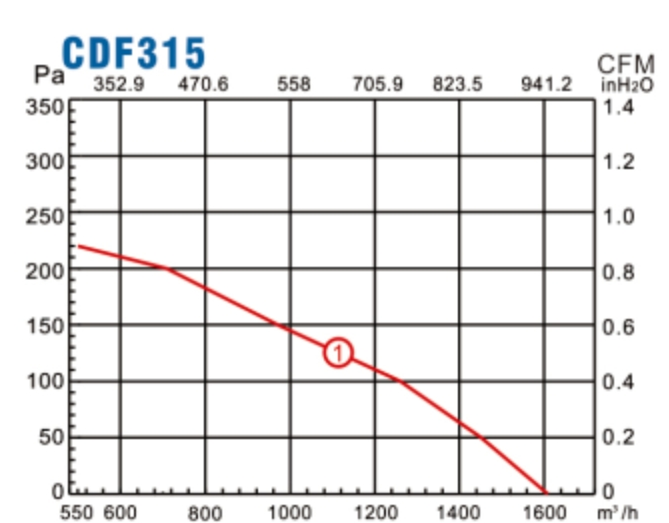 Характеристики производительности канального вентилятора Lionball CDF2E315: