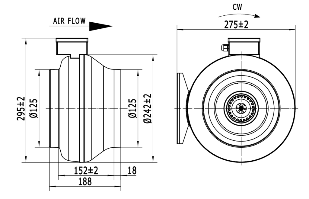 Чертеж вентилятора Weiguang LXFB2E190/44-P92/15-G125: