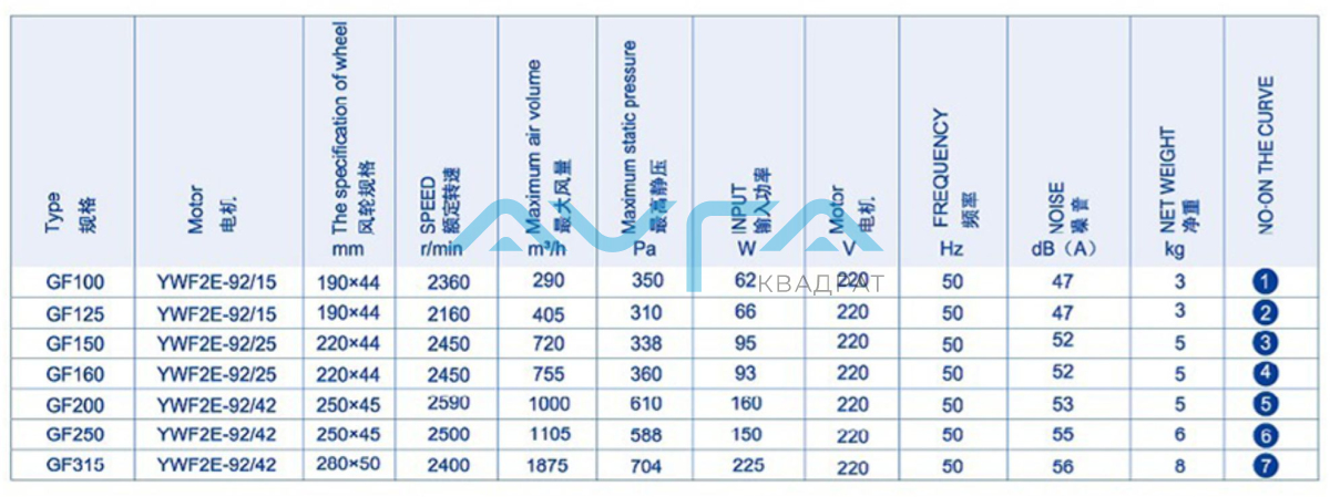Характеристики производительности вентилятора Weiguang LXFB2E250/48-M92/35-G200: