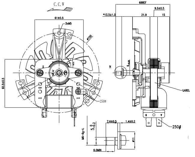 Чертеж вентилятора KELI YJ61-20A B2295YJ002A: