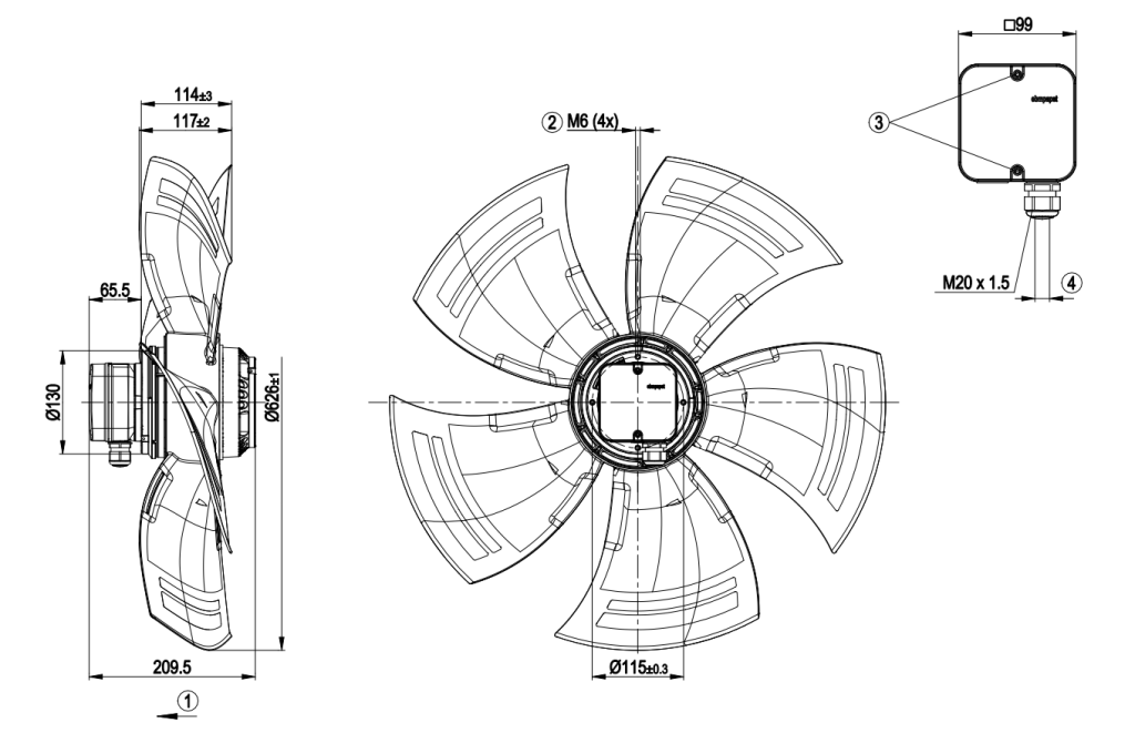 Чертеж и габаритные размеры вентилятора A6E630-AN01-01