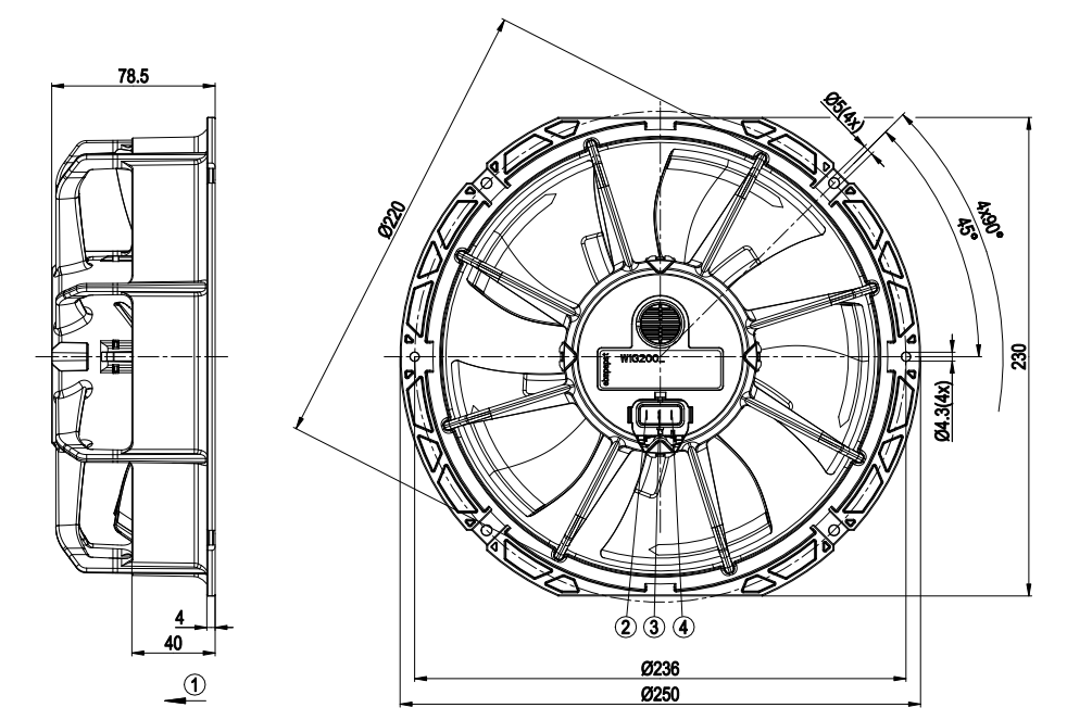 Чертеж осевого ЕС-вентилятора ebmpapst W1G200EG5715:
