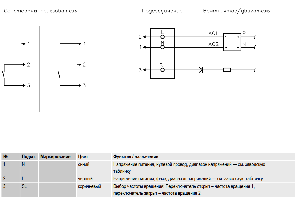 Схема подключения осевого ЕС-вентилятора ebmpapst W1G200EG5715: