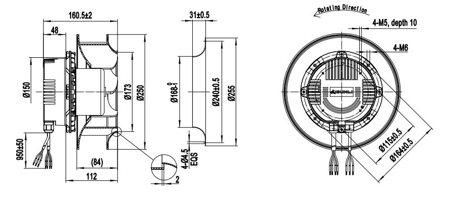 Чертеж вентилятора DUNLI EC102-B250-B49 085-007-B-X01:
