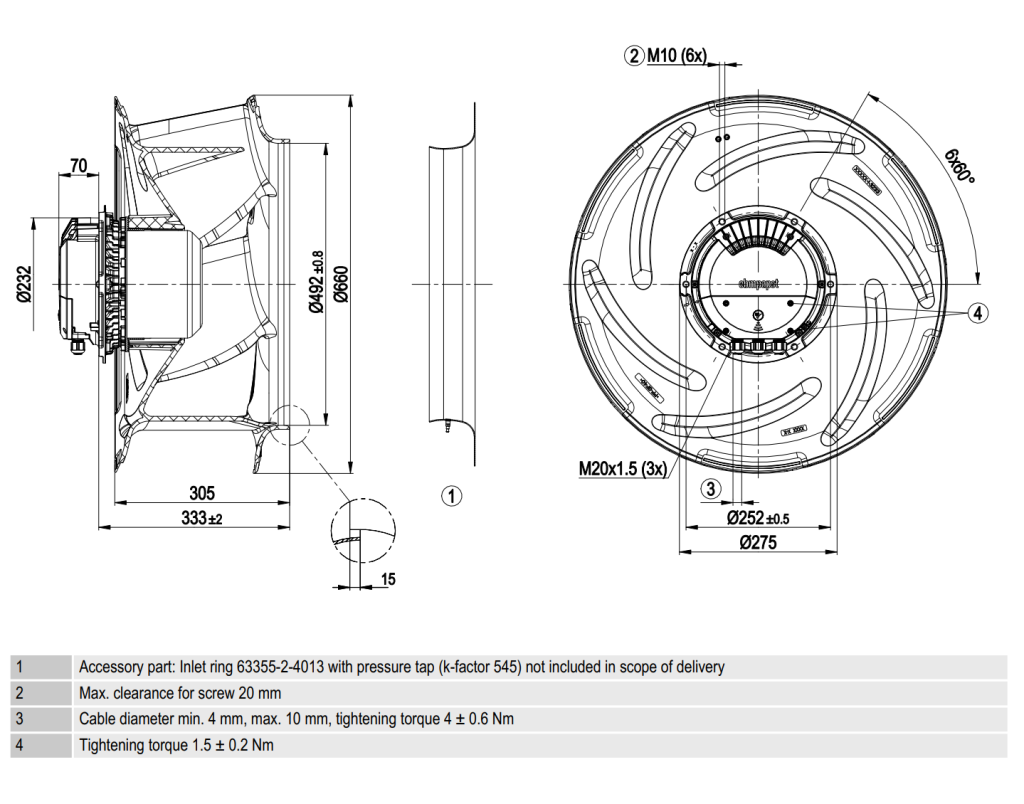 Чертеж центробежного EC-вентилятора RadiCal R3G630FB3203: