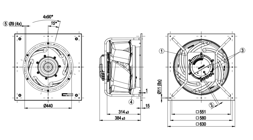 Чертёж вентилятора ebmpapst K3G500-8317081582: