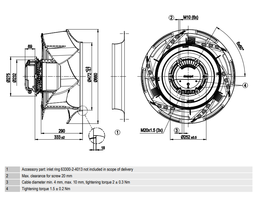 Чертеж центробежного EC-вентилятора RadiCal R3G630-RB32-03 ebmpapst: