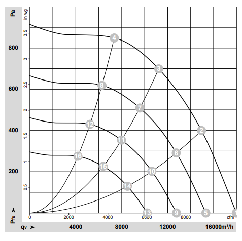 Данные характеристик производительности центробежного EC-вентилятора RadiCal R3G630-RB32-03 ebmpapst: