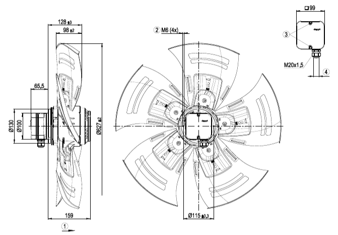 Чертеж вентилятора Ebmpapst A4D630AR0102:
