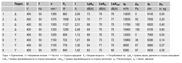 Характеристики производительности вентилятора Ebmpapst A4D630AR0102: