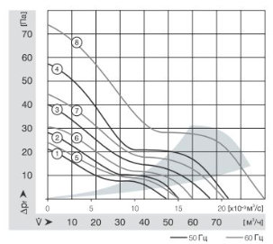 Характеристики, производительность по воздуху вентилятора ebmpapst 3650