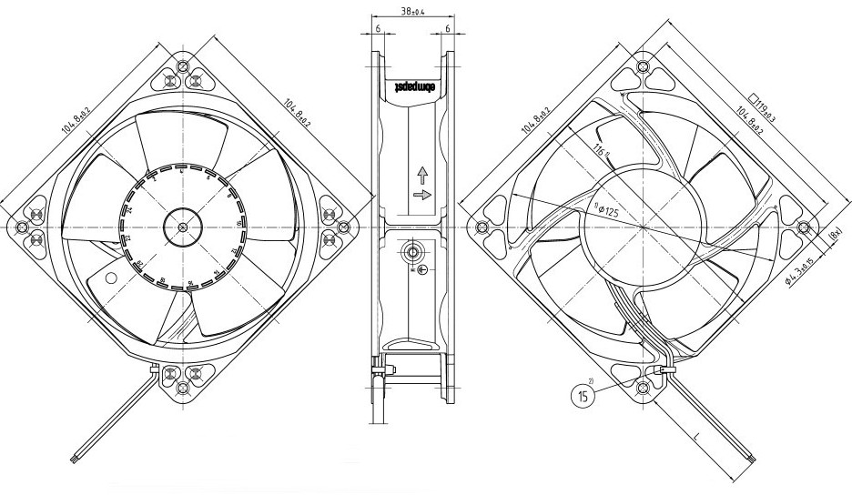 Технические характеристики осевого вентилятора ebmpapst 4112 N/2 HU Размер: 565,2 кб
