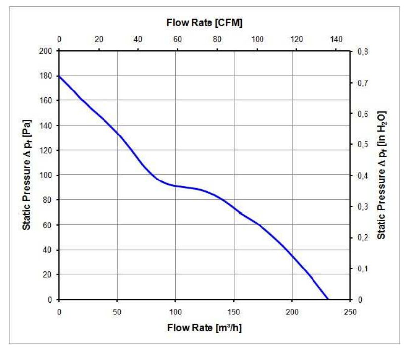 Компактный осевой вентилятор постоянного тока, выпуск воздуха через крепежные поперечины, подключение с помощью одножильных проводов сечением AWG 22 UL 1007, TR 64, корпус с выводом для заземления под винт М4 х 8 (Torx), сигнал контроля скорости 2 импульса на один оборот, сигнал нормального / ненормального режима работы, внешний/ внутренний датчик температуры, вход для аналогового управляющего сигнала, защита от влаги. Номинальное напряжение 12 В, воздушный поток 2400 м3 /час.