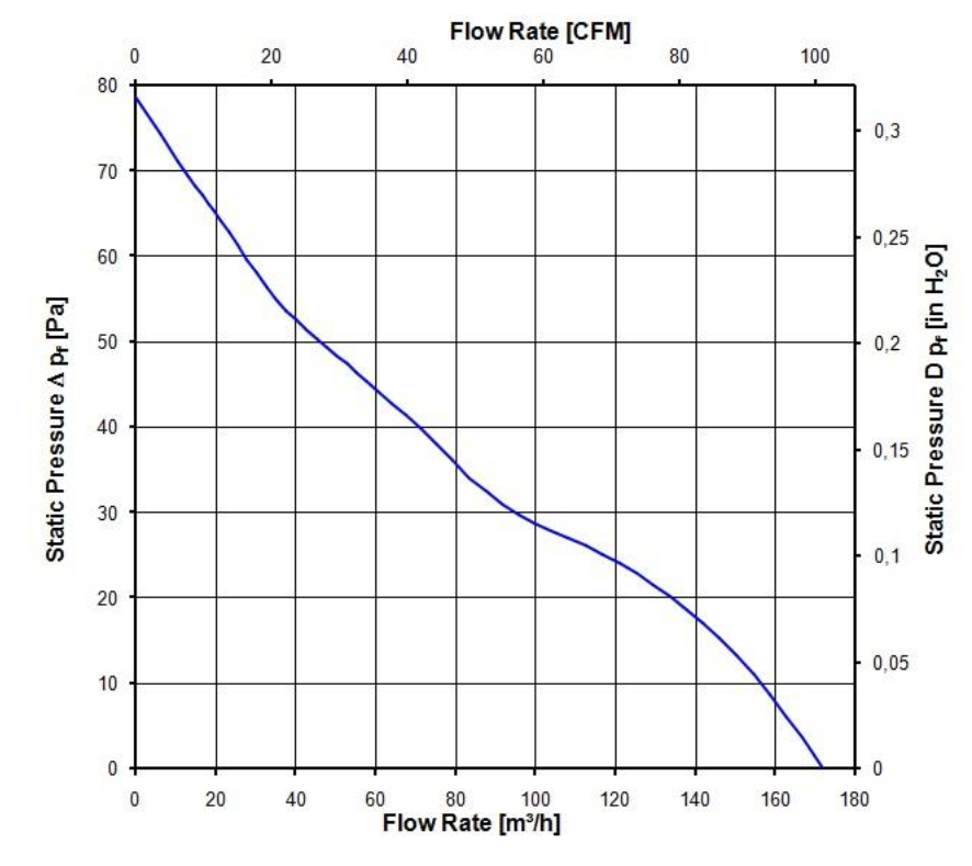 Характеристики, производительность по воздуху вентилятора ebmpapst 4314