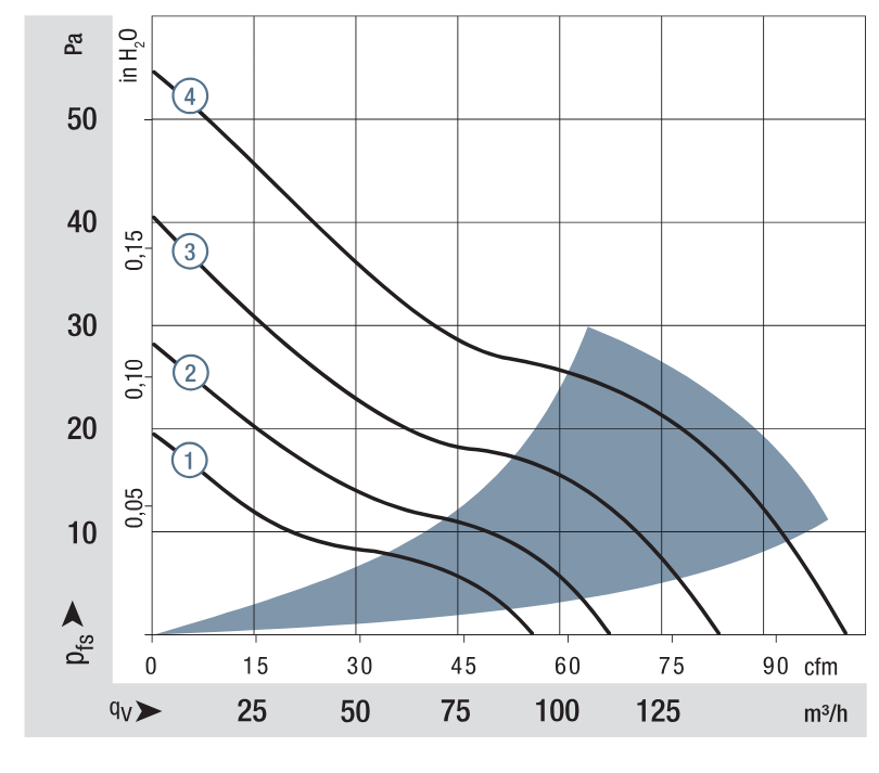 Характеристики производительности по воздуху вентилятора ebmpapst 4412 F
