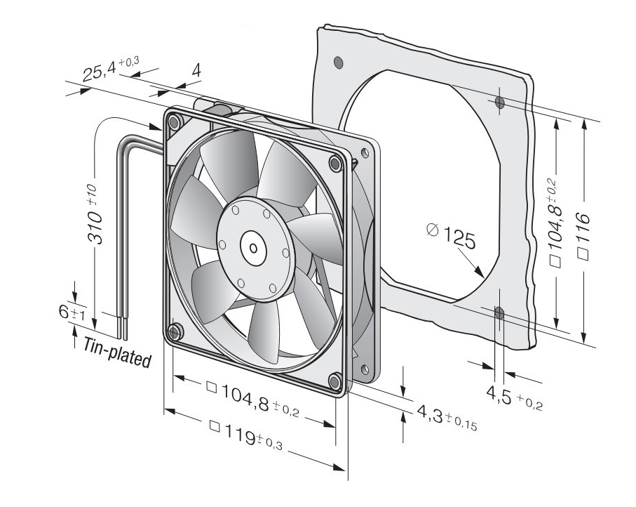 - Микровентиляторы ebmpapst 4412 F постоянного тока с электронной коммутацией внешнего роторного двигателя. Полностью интегрированная коммутационная электроника.