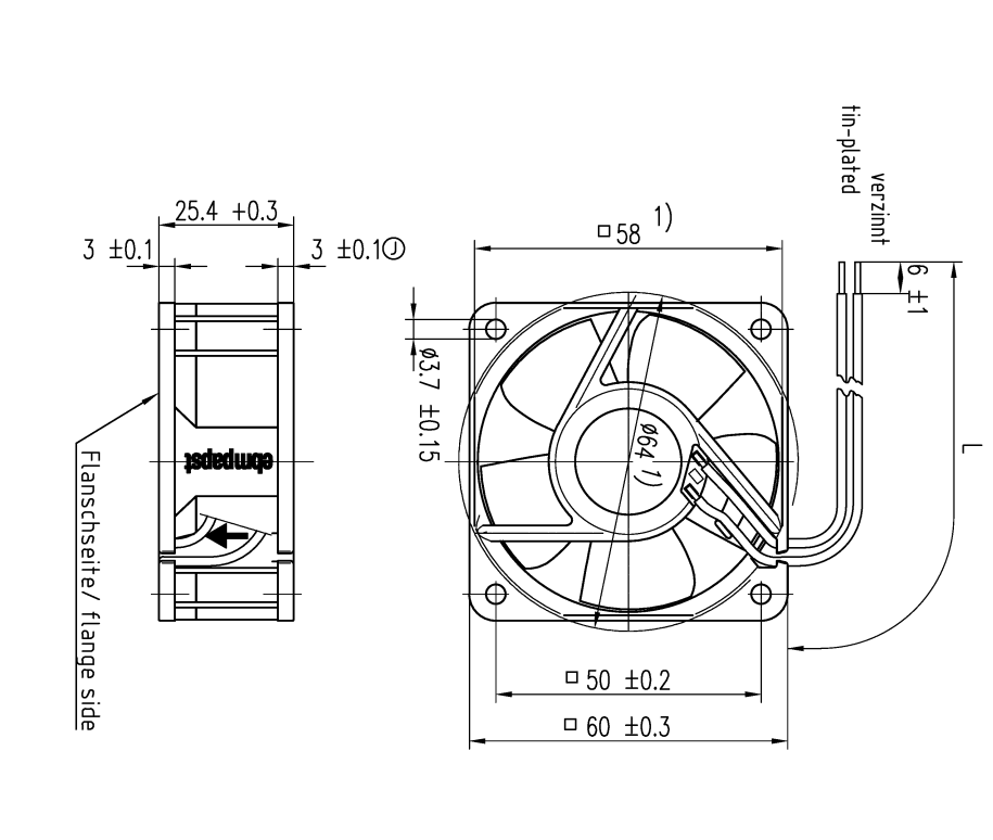 - Высокий расход воздуха при компактных габаритах 60×60×25 мм