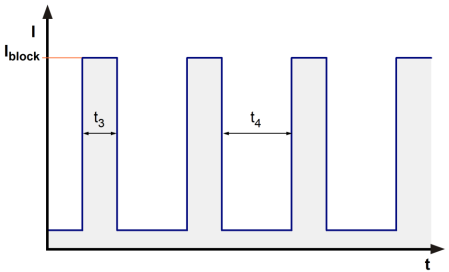 IF <= 50 мкАЗащита от заторможенного ротора Автоматический перезапуск Ток заторможенного ротора при UN Iблок приблизительно 600 мА Тактовый сигнал при заблокированном роторе t3 / t4 типичный: 0,4 s / 10 s
