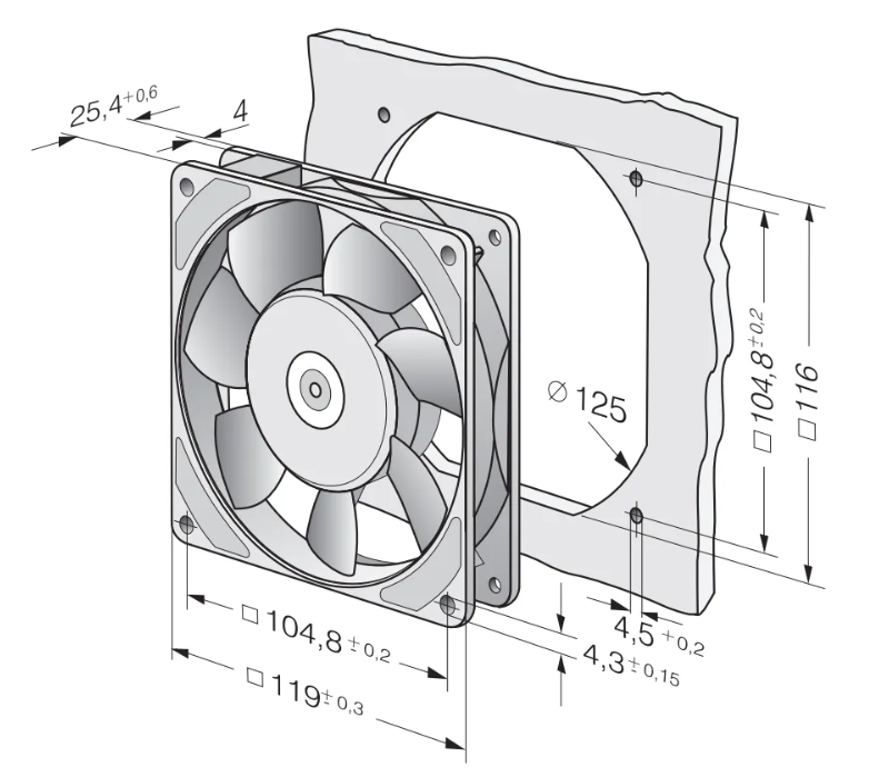 Чертеж вентилятора Ebmpapst 9906 L: