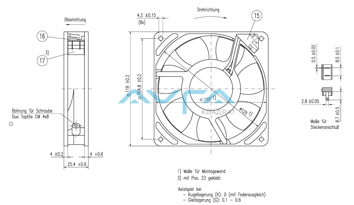Нормальная плотность воздуха = 1,2 кг / м3; Температура 23 ° C +/- 3 ° C; Ось мотора горизонтальная; Разогрев время до измерения 5 минут (если не указано иное).