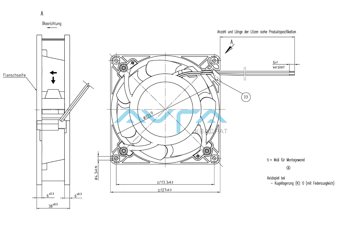 Измерено с помощью двухкамерной всасывающей установки в соотв. согласно DIN EN ISO 5801. Нормальная плотность воздуха = 1,2 кг / м3; Температура 23 ° C +/- 3 ° C; В зоне входа и выхода не должно быть никаких твердых препятствий в пределах 0,5 м. Информация действительна только при указанных условиях испытаний и может быть изменена условия установки. Если есть отклонения от стандартных условий испытаний, характеристические значения должны быть проверены в установленных условиях.