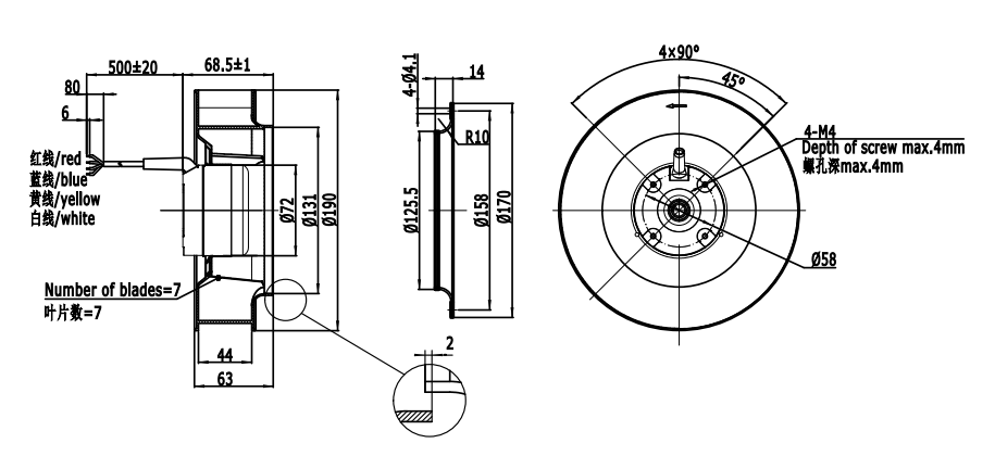 Чертеж вентилятора Weiguang DC072/25B3G01-B190/44P1-01: