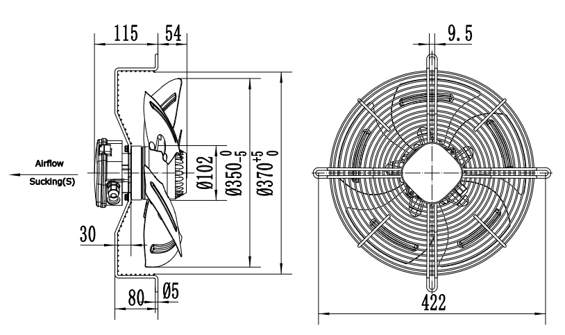 Чертеж осевого вентилятора Weiguang YWF4E-350S-102/34-G: